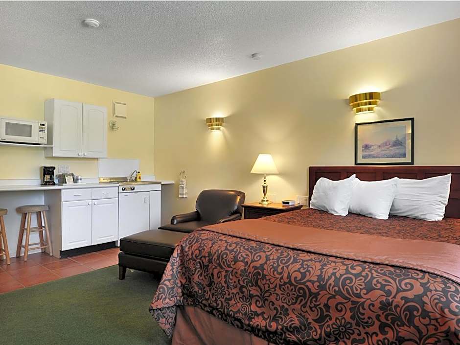 This suite features a tea/coffee maker, microwave, seating area and wet bar.